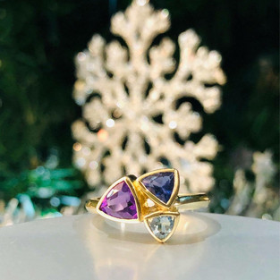 Gemstones McMaster JewellersDec 19, 20181 min readRated NaN out of 5 stars.Iolite, amethyst and aquamarine look so nice together and I love the fact that they’re all trillion cuts😍 Set in 9ct yellow gold, this costs £400.